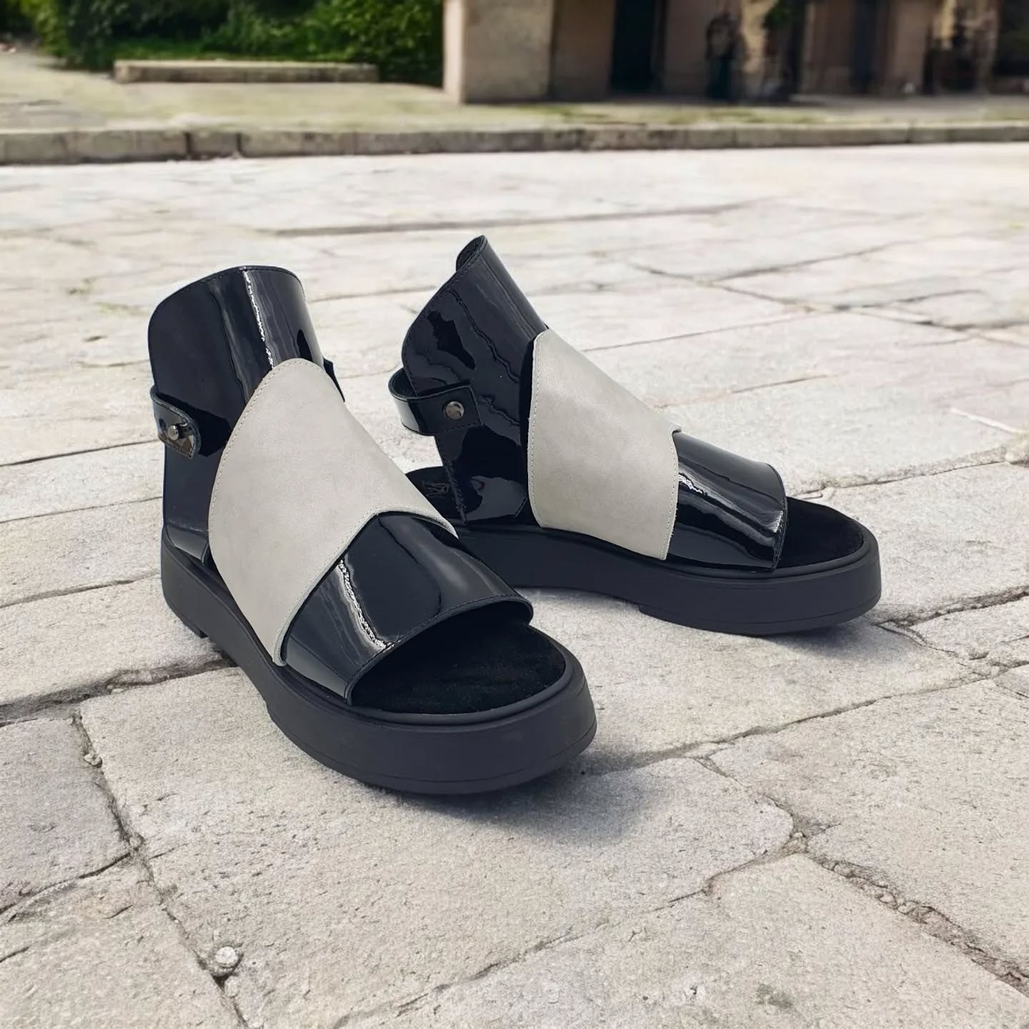 Γυναικεία Χειροποίητα Δερμάτινα Σανδάλια nude- γκρι. - 20036