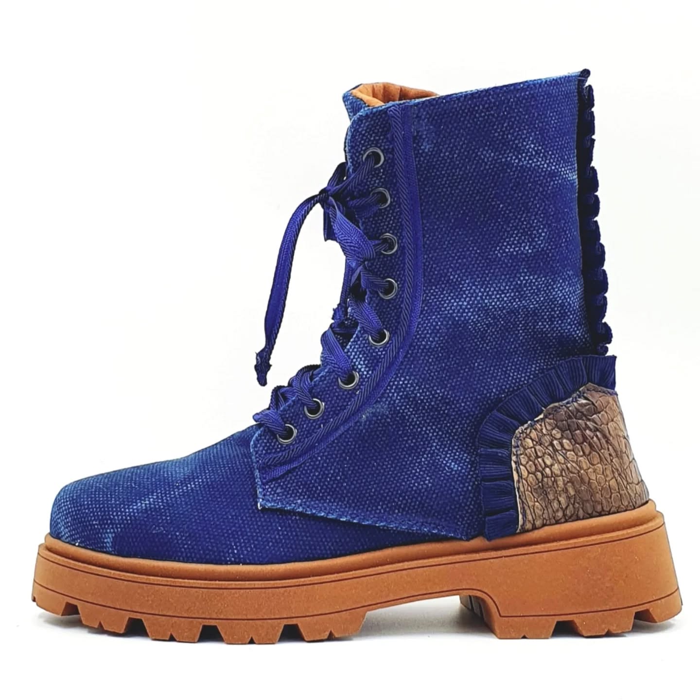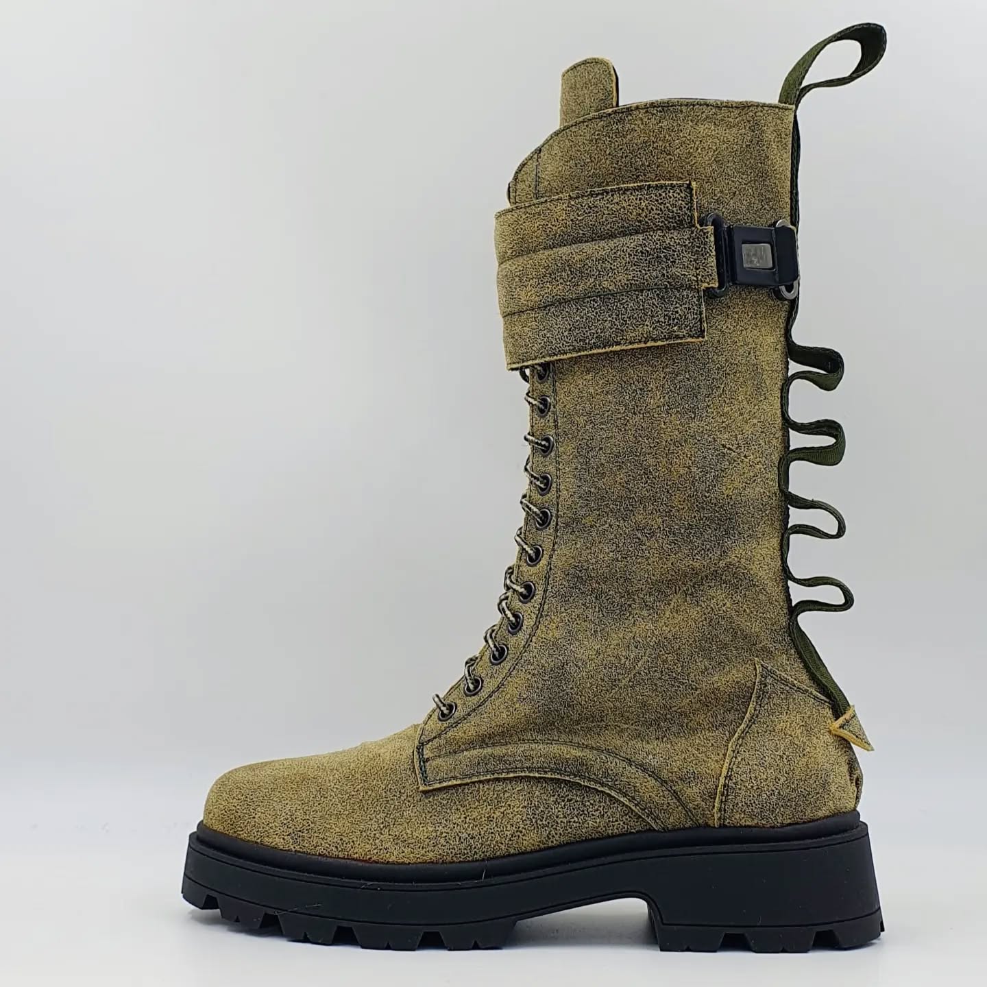 Χειροποίητο Δερμάτινο-Υφασμάτινο καλοκαιρινό μποτάκι Χρυσό/Μπεζ-50023