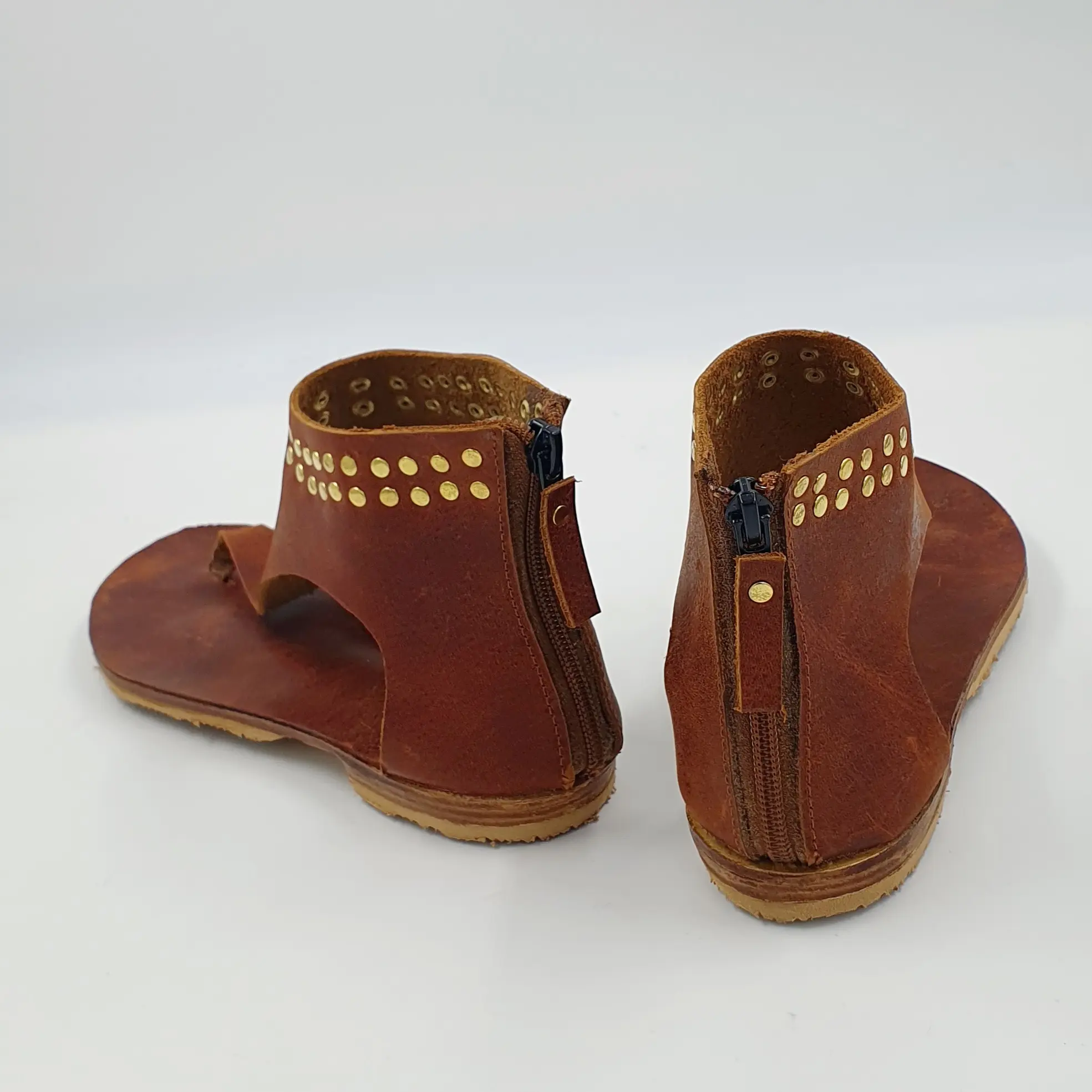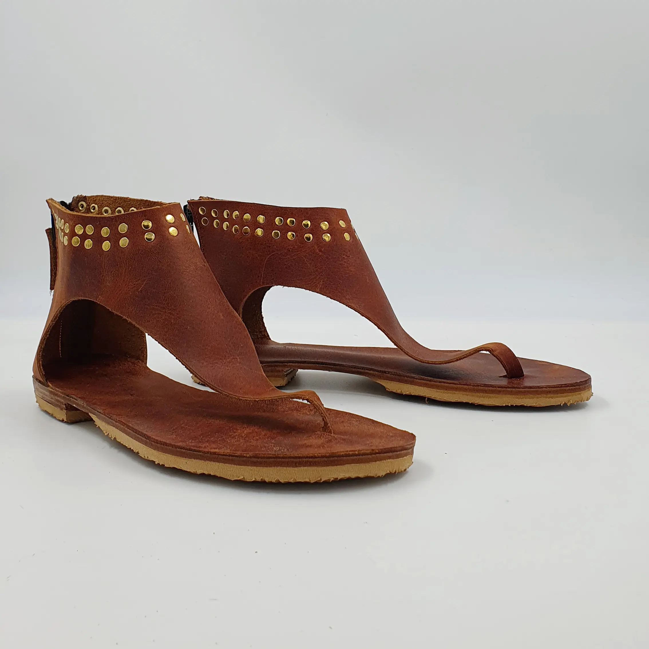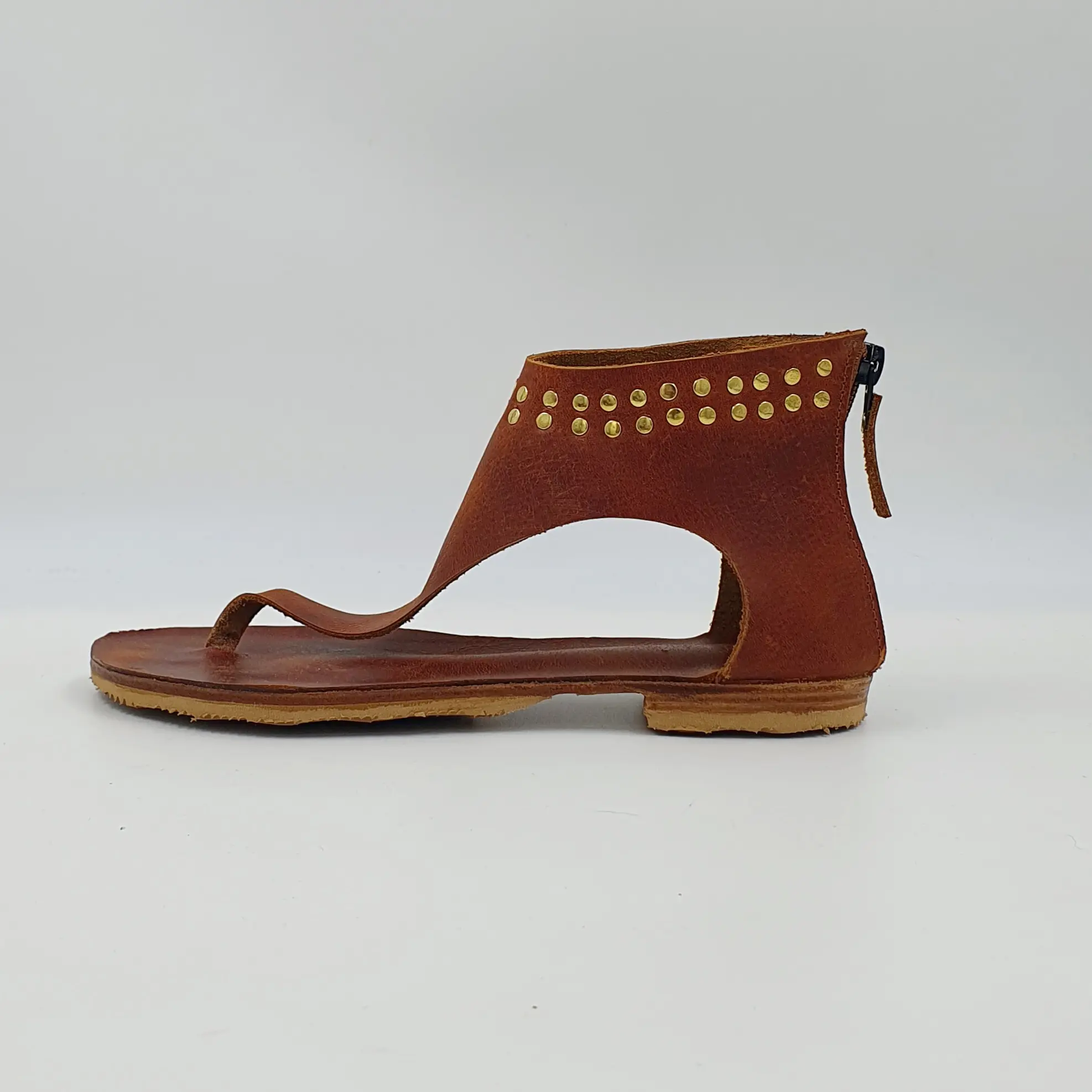 Γυναικεία Χειροποίητα Δερμάτινα Σανδάλια nude- γκρι. - 20036